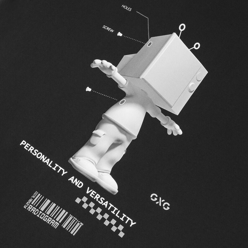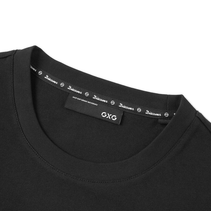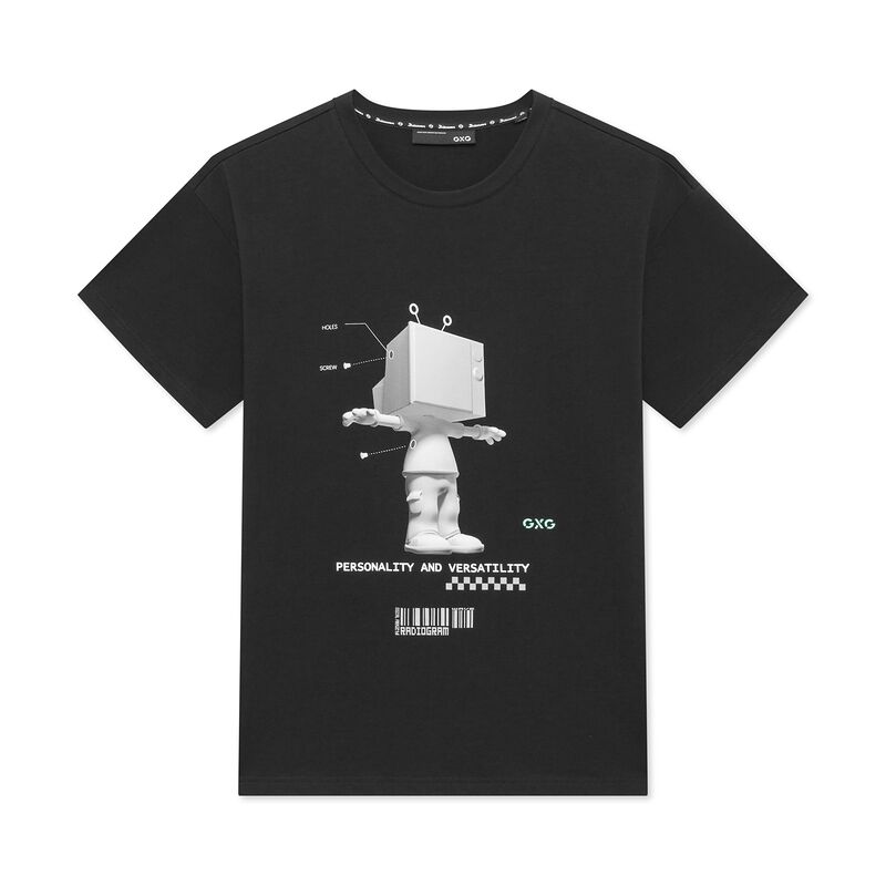 GXG男装生活系列2021年夏季商场同款黑色圆领T恤男士印花上衣