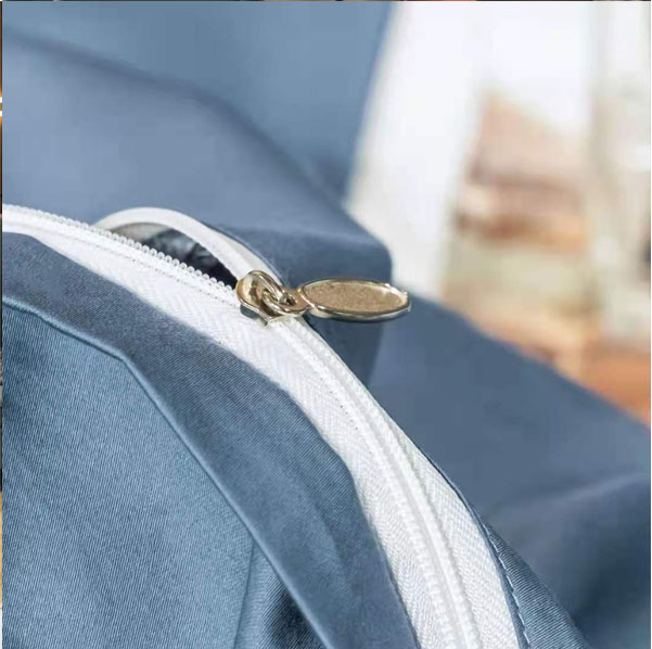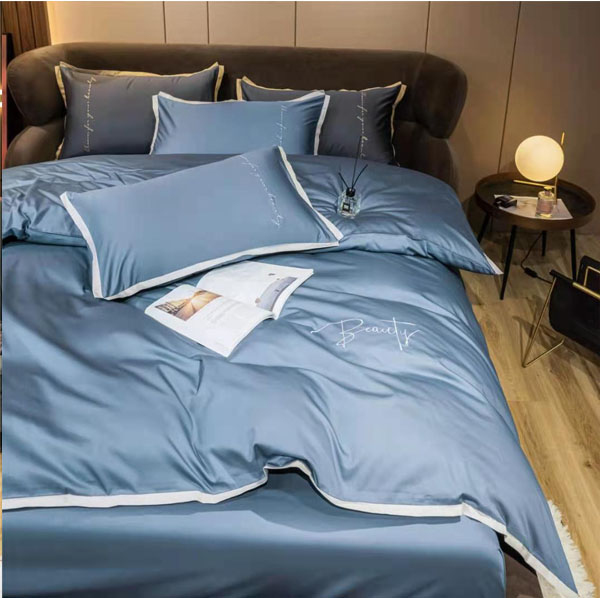 长绒棉四件套 高品质的棉花打造高品质的睡眠体验,60支长绒棉兼具奢华与实用。缎纹工艺最大程度突显长绒棉丝般光泽特性。 被套枕套以主色搭配配色飞边,活泼灵动,兼以精致字母刺绣,是设计师的低调小心机,也是卧室稳重不沉闷的好选择。 沉稳宾利兰,大气优雅,是包容天空与大海的情怀