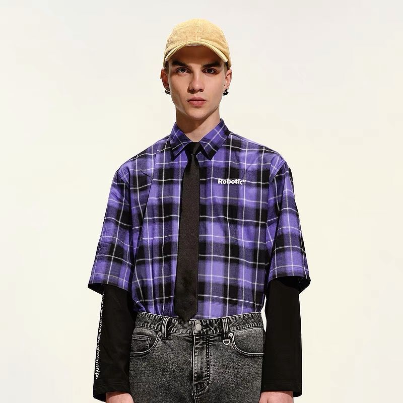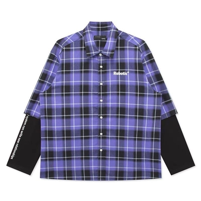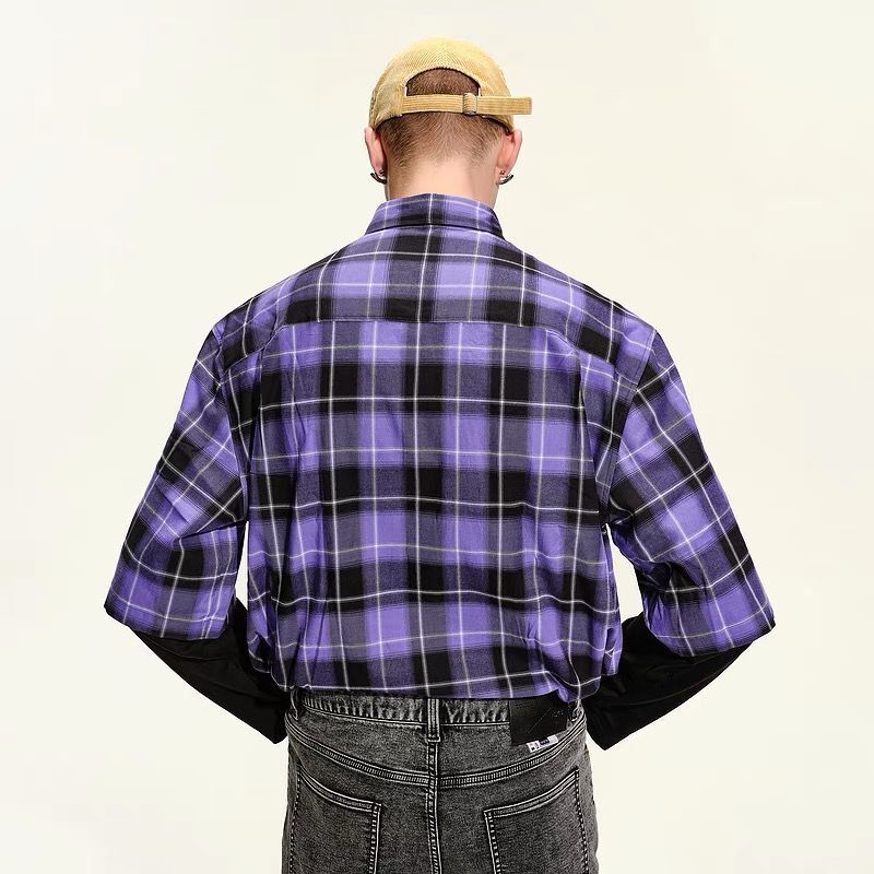 >>GXG男装2021春季紫色假两件衬衫拼接外套青春潮