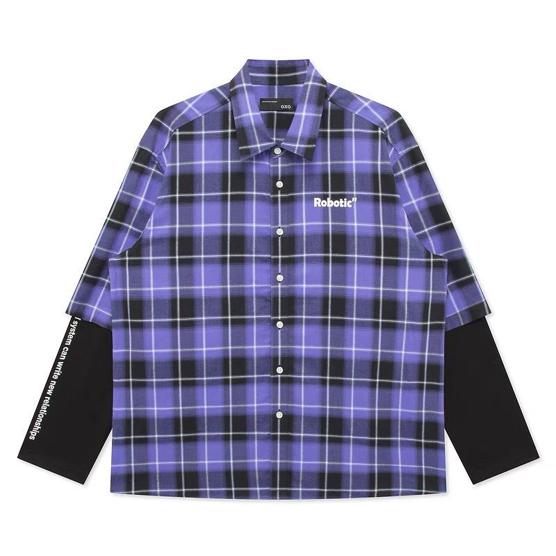 GXG男装2021春季紫色假两件衬衫拼接外套青春潮