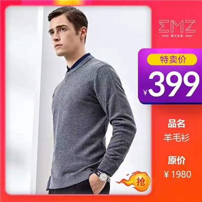 EMZ 鄂尔多斯羊毛衫,100%绵羊毛,手感细腻,适合贴身穿着