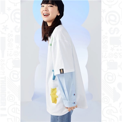 少女装>>太平鸟贱熊T 恤女2021年春季新款泰迪熊印花宽松T恤
