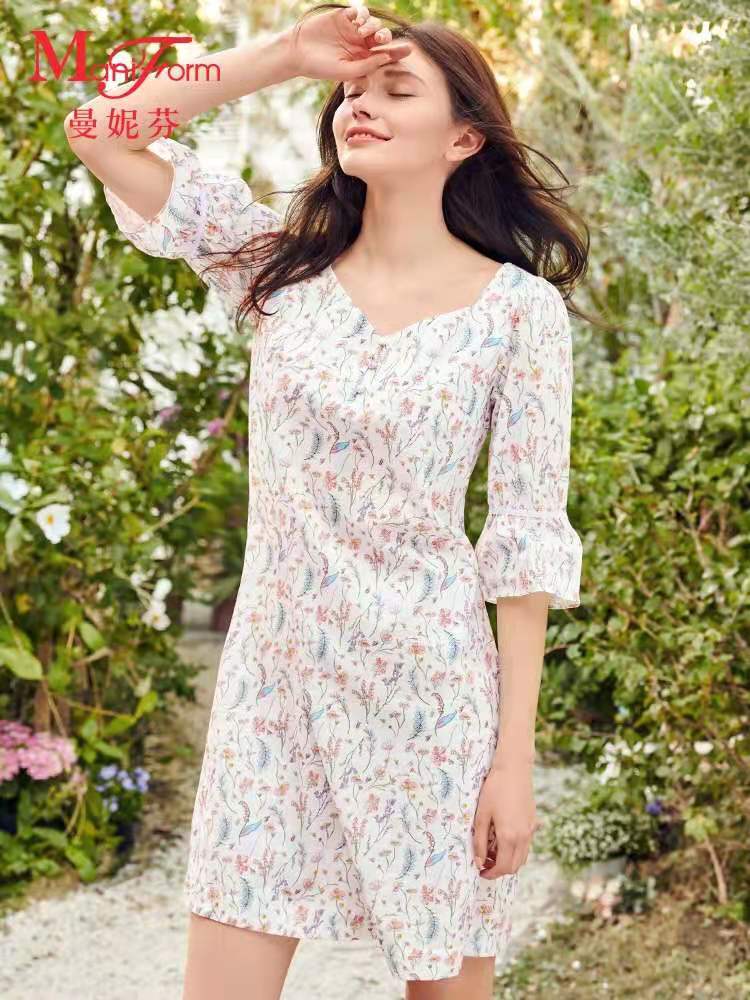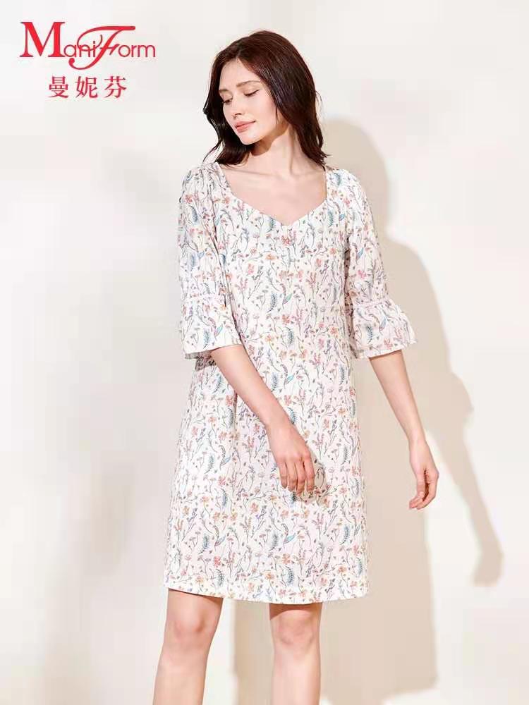 曼妮芬*Iracema跨界联名舒适透气棉质睡裙甜美睡衣印花全棉家居