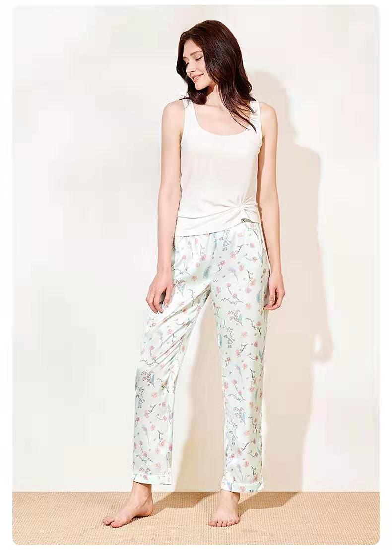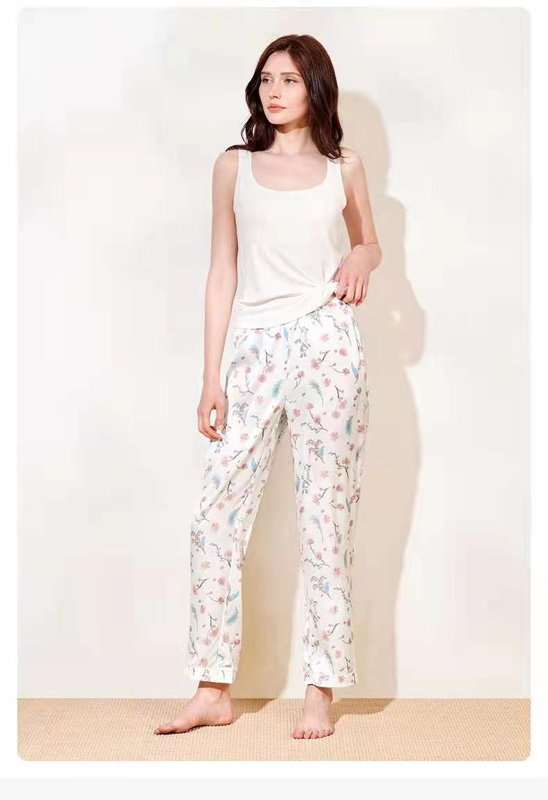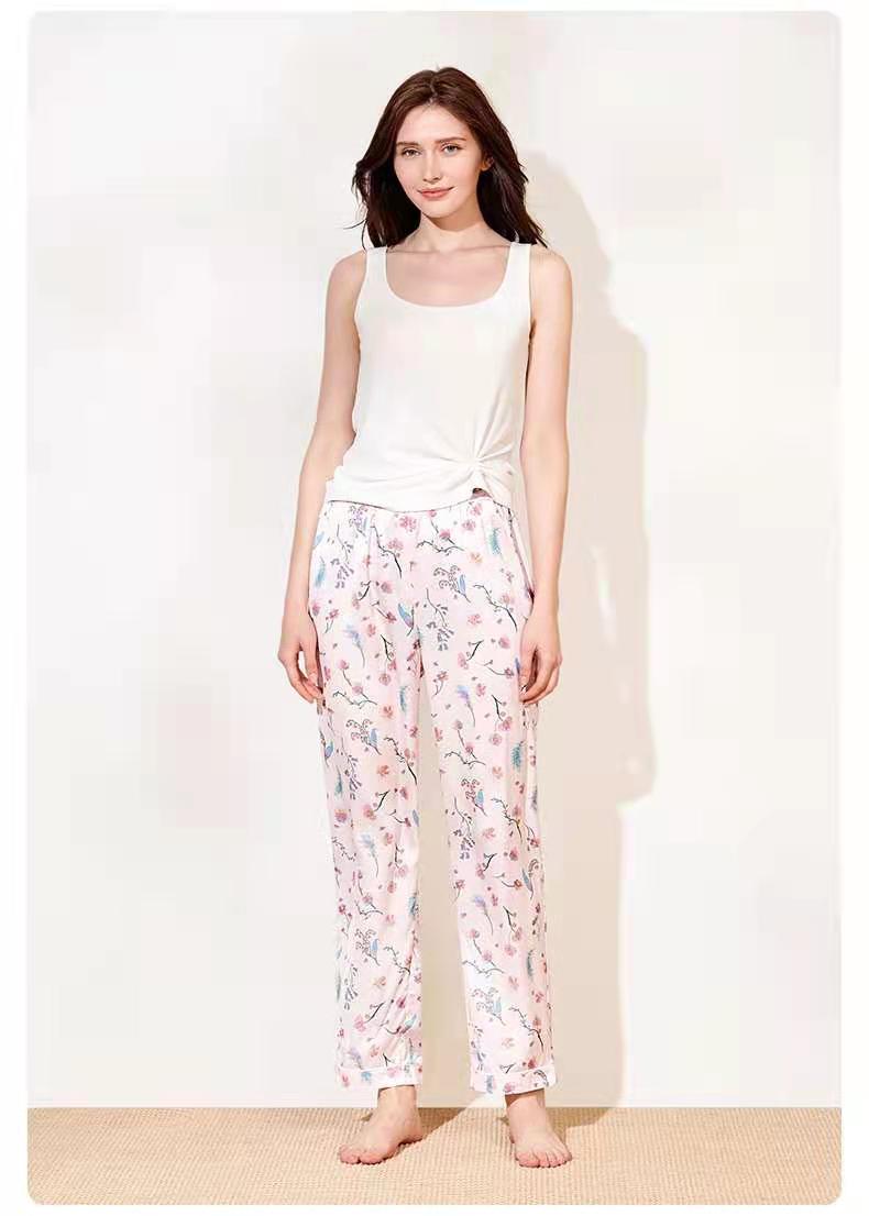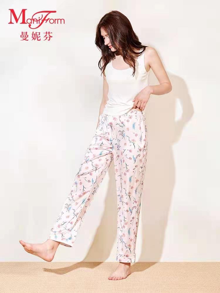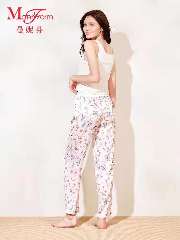 曼妮芬*Iracema跨界联名舒适好穿中腰长裤仿真丝性感甜美睡裤家居