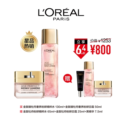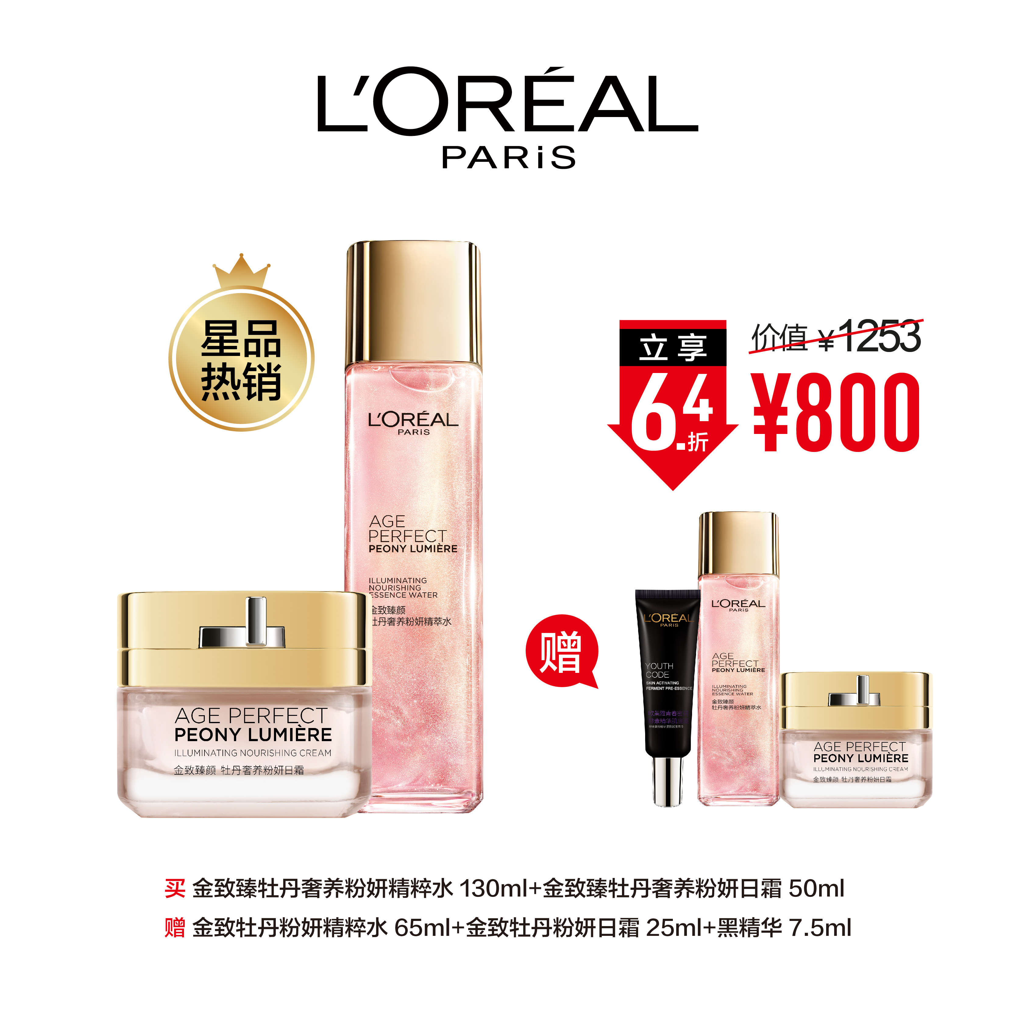 >>欧莱雅金致臻颜牡丹奢养粉妍水+牡丹日霜(约6.4折)