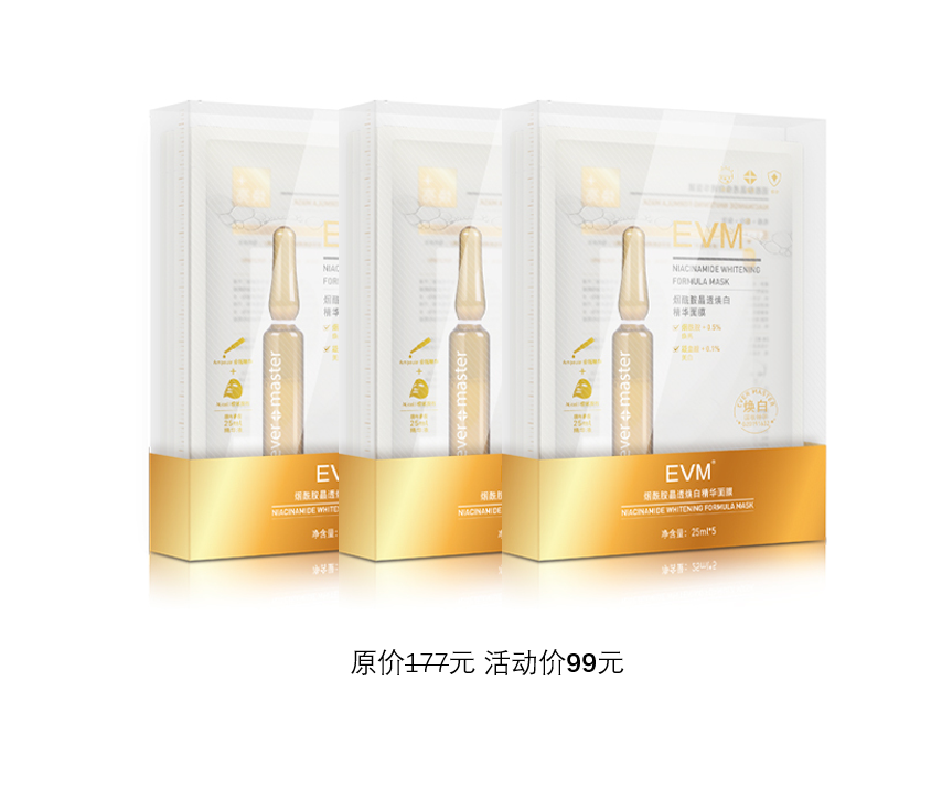 >>EVM烟酰胺晶透焕白精华面膜3盒