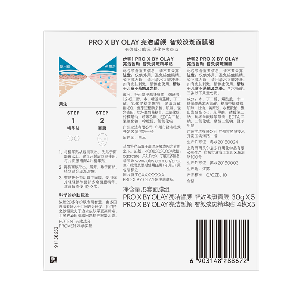 >>玉兰油亮洁皙颜智效淡斑面膜组