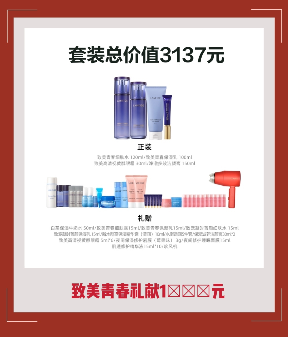 兰芝致美礼盒,保湿紧致细腻肌肤。