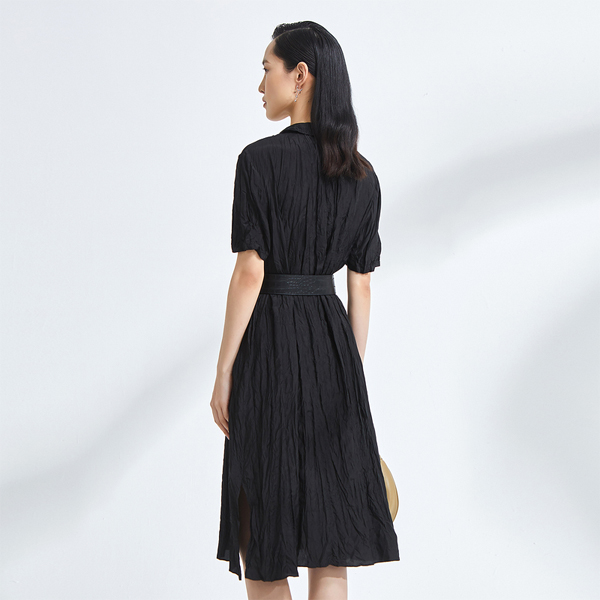淑女装>>OTT服饰2021夏新品真丝压褶衬衫连衣裙OS1301856