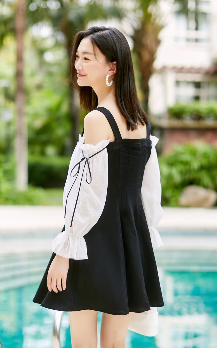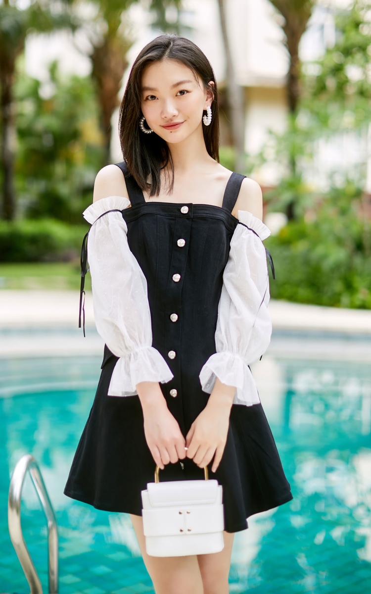 少女装>>Vero Moda2021春夏新款复古浪漫网纱牛仔仙女连衣裙