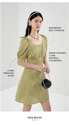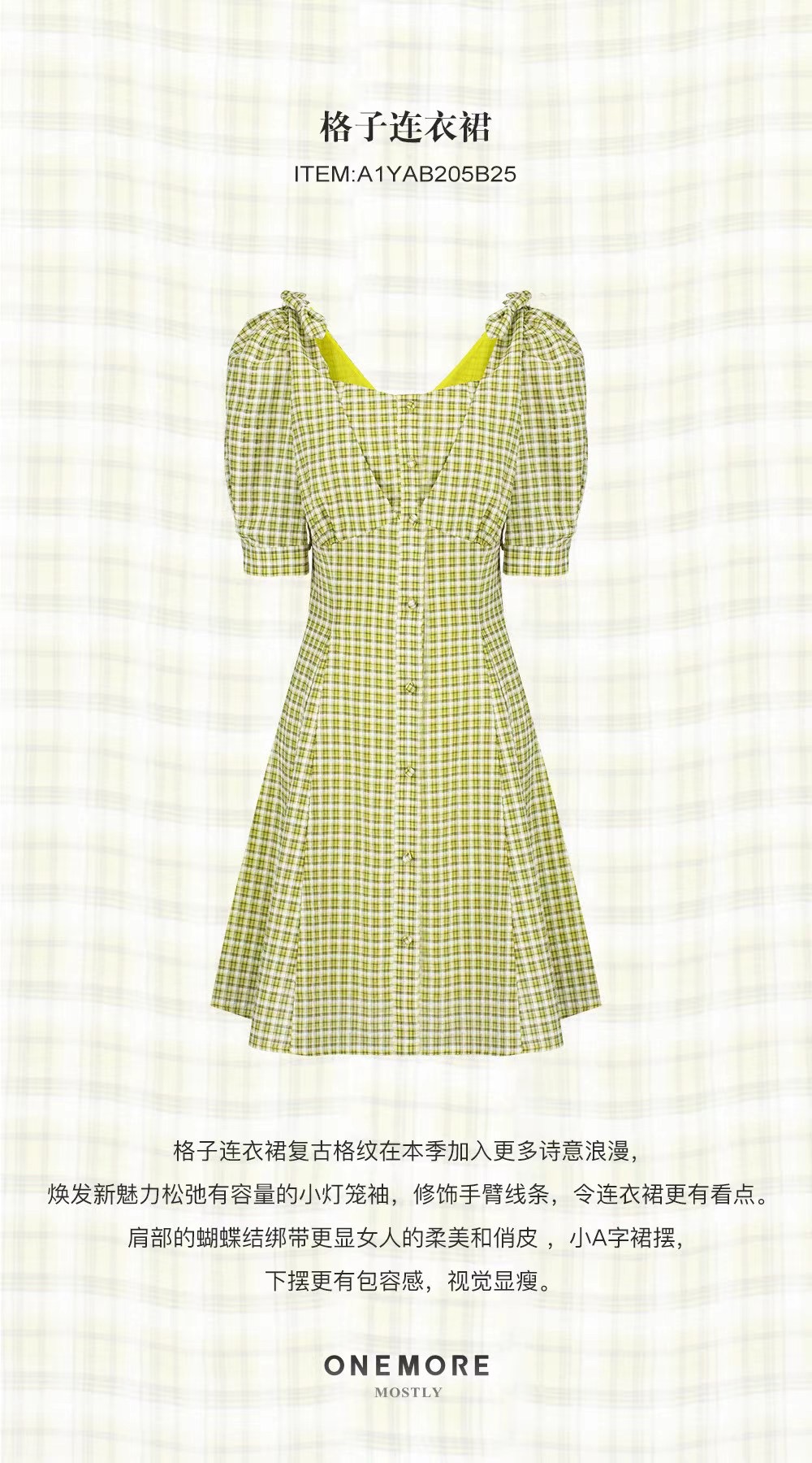 #英国梨少女# - 牛油果格纹裙 法式田园女孩打卡上线! 小方领加上松弛有度的泡泡袖 尽显诗意浪漫,焕发果绿清新味