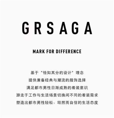 大通购物中心四楼男装GRSAGA 电话0575-2579507