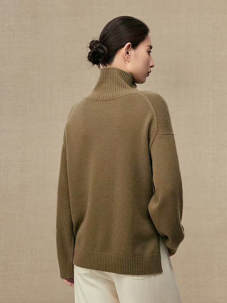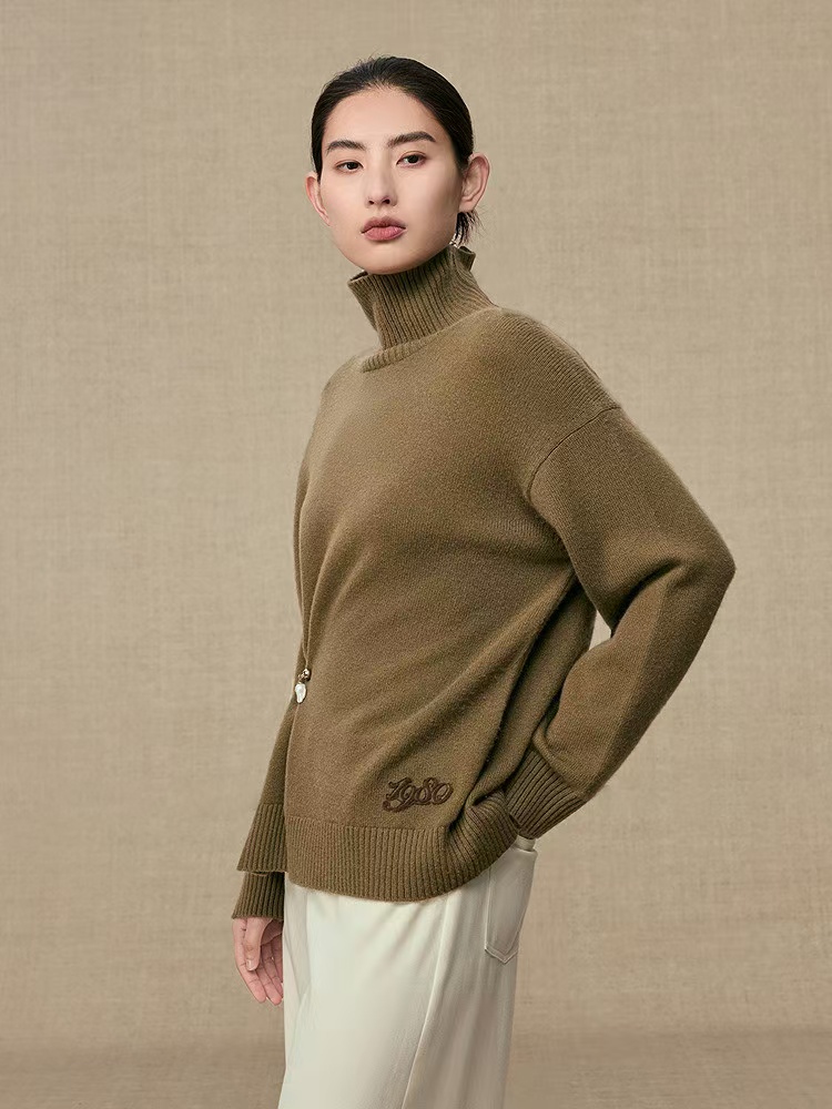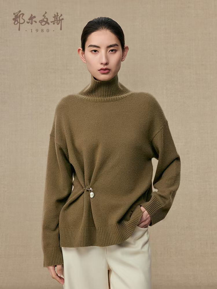鄂尔多斯1980抗菌羊绒别针樽领女套衫